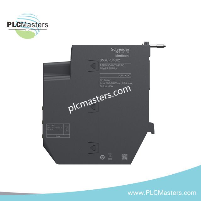The Schneider Electric BMXCPS4002 is a redundant AC input power supply module designed for the Modicon X80 platform. It delivers 40W at 24V DC and 18W at 3.3V DC, ensuring stable power for I/O modules and processors. This module enhances reliability in automation systems with built-in redundancy, robust protection, and advanced diagnostics. It supports 100–240V AC input, offering flexibility for global installations. The BMXCPS4002 provides diagnostics through network communication, including temperature monitoring, redundancy tests, uptime duration, and remaining lifetime. Built with innovative technology and high-quality materials, it ensures long-term performance in demanding industrial environments. This power supply module suits medium to large process automation applications, maintaining operational integrity under harsh conditions. With certifications such as CE, UL, CSA, EAC, and RCM, it meets international safety and electromagnetic compatibility standards.